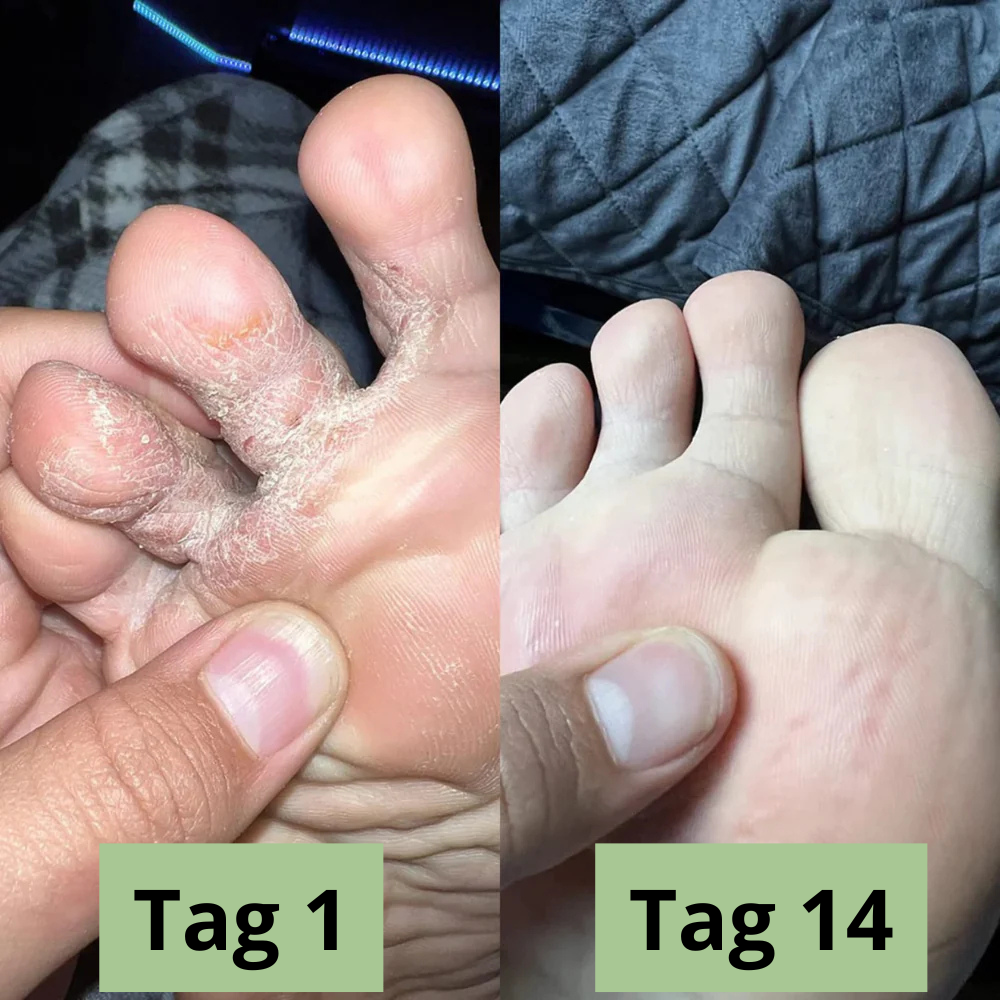 Die meisten Anwender bemerken innerhalb von 1–2 Wochen eine deutliche Reduzierung von Juckreiz und Geruch. Sie fühlen sich wieder wohler in ihren Schuhen.